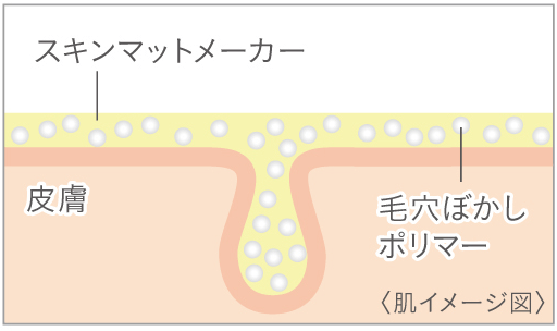 毛穴ぼかしポリマーが肌の凹凸を埋め、つるつるで毛穴の目立たない肌に整えます。