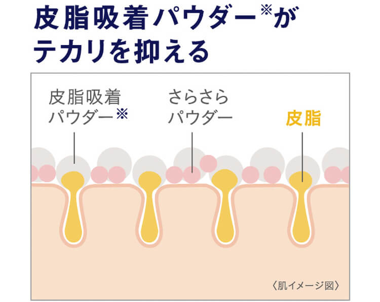 テカリを抑える皮脂吸着パウダー※が余分な皮脂を吸着し、適度にオイルコントロール。さらに肌すべりを良くするパウダーが肌をさらさらに。薄く塗り伸ばせば、速攻で清潔感のあるマットな肌へ。