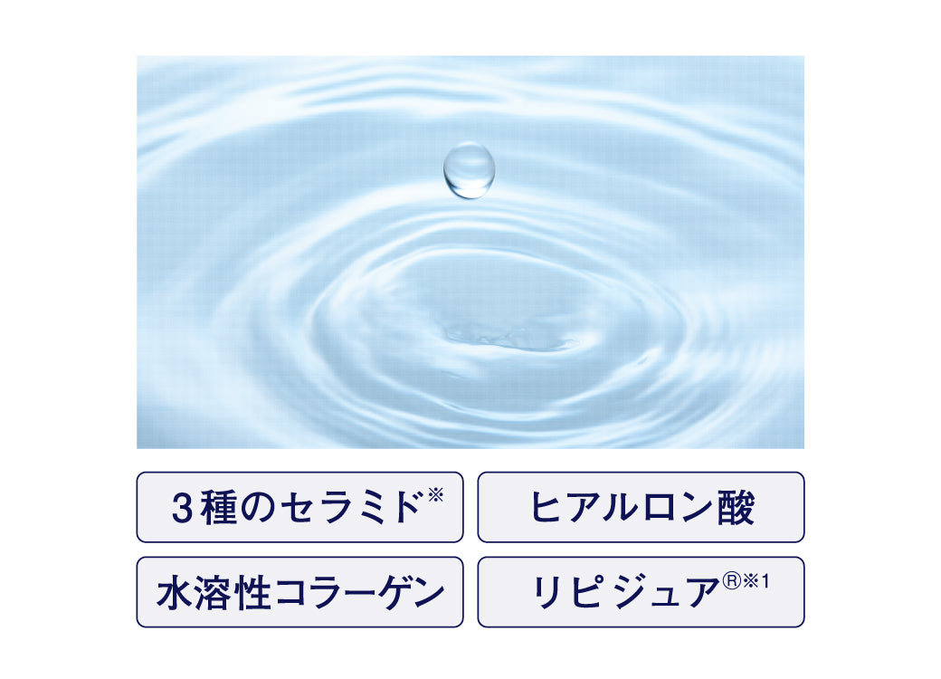 3種のセラミド※、ヒアルロン酸、水溶性コラーゲン、リピジュアⓇ※1を配合。気になる皮脂汚れはしっかり落としながらも肌に潤いを与えます。洗い上がりはつっぱり感の少ない、すべすべな肌に整えます。