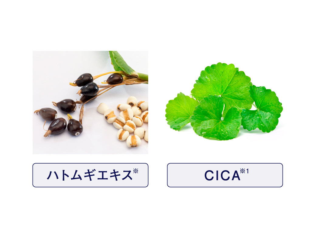 2種の肌荒れ防止対応成分(ハトムギエキス※、CICA※1)を配合。洗いながら肌荒れを防ぎます。