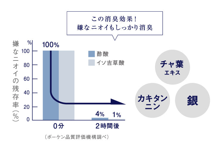 *ニオイのもとといわれる酢酸、イソ吉草酸で検証、すべてのニオイに効果が得られるものではありません(ボーケン品質評価機構 調べ)